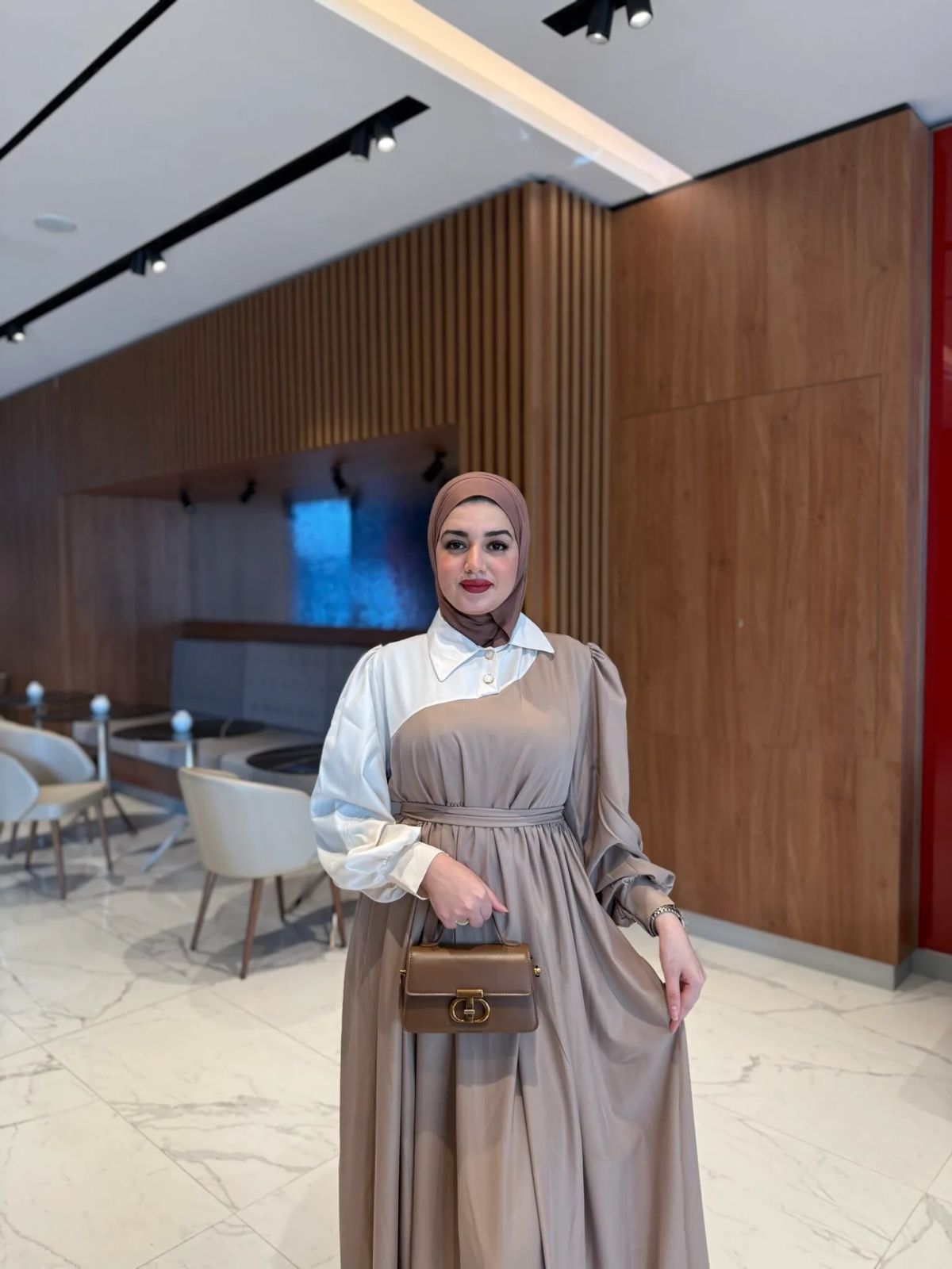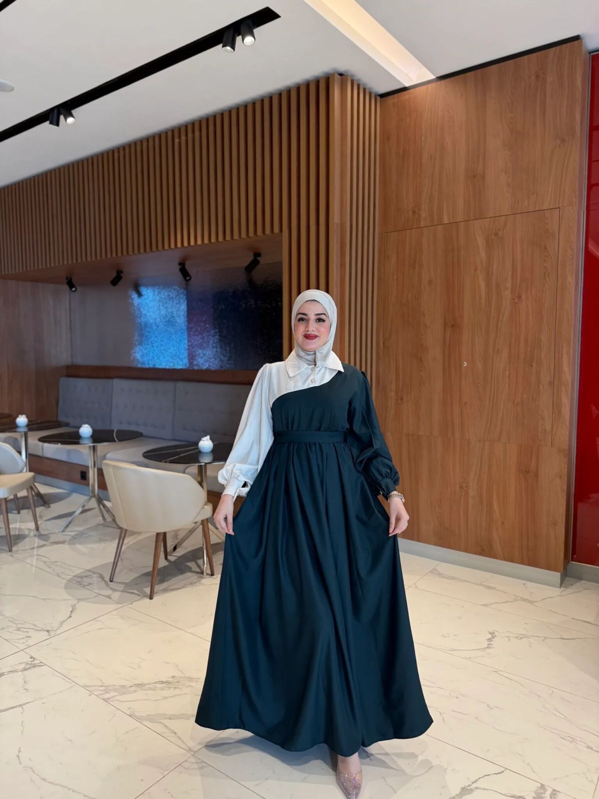 كتتفي بمظهر واحد؟ هاد الفستان كيعطيك مزيج مثالي بين الرقي الكلاسيكي و التصميم العصري. مصمم خصيصاً للمرأة اللي كتعشق التميز بأسلوب محتشم وراقي.